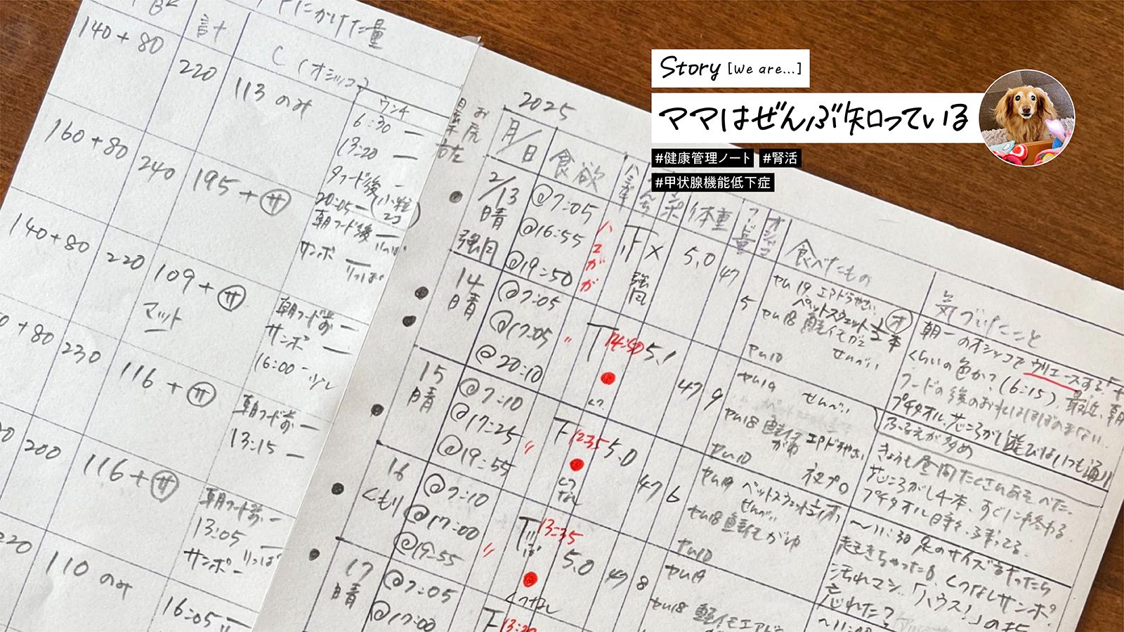 甲状腺機能低下症と腎不全を患ってからは「飲んだ水の量」と「おしっこの量」も記録しているという。