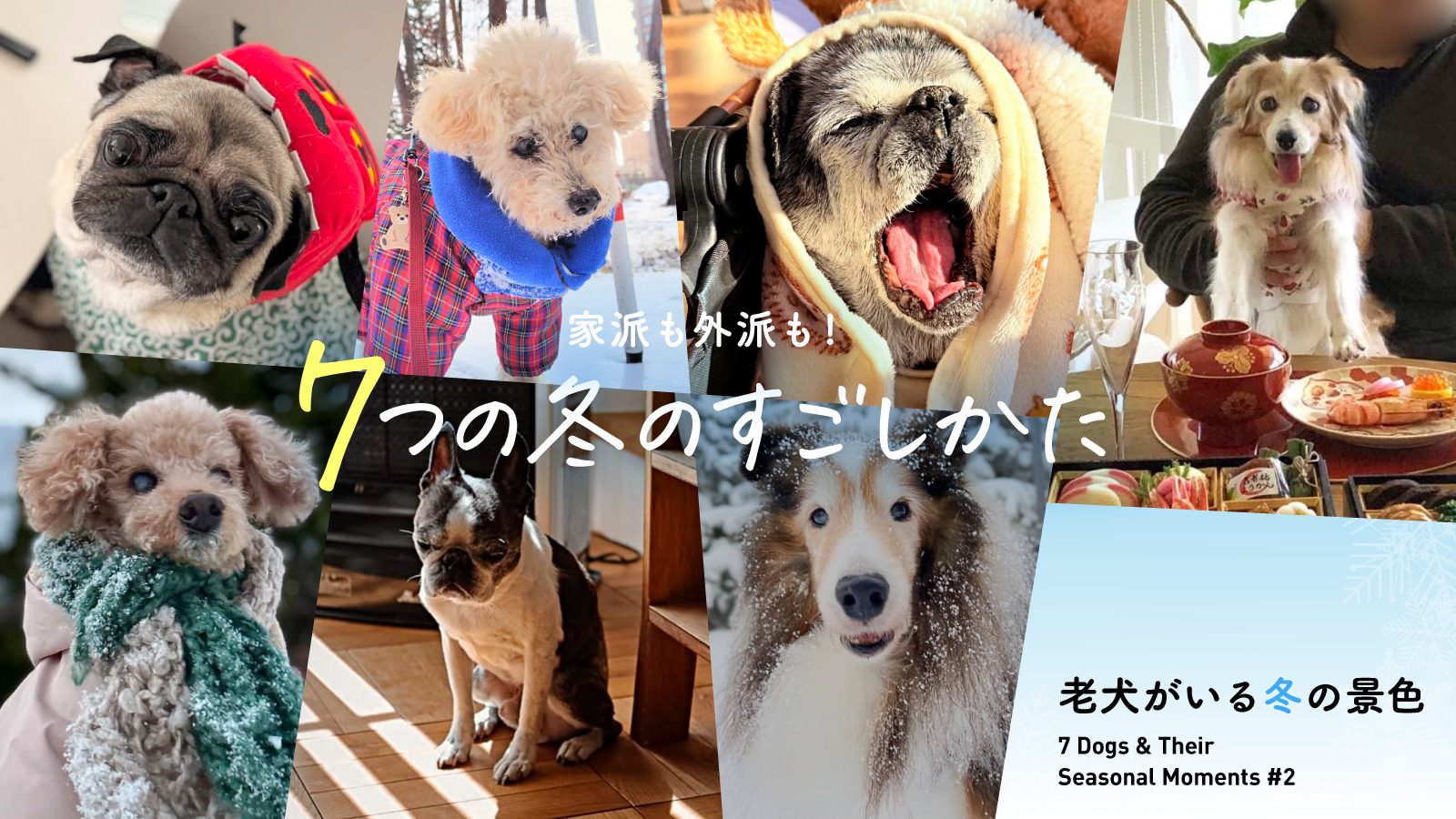 今回は、厳しい冬の寒さを、家族の愛情で乗り切った13歳〜21歳のナイスシニア犬7頭をご紹介します。