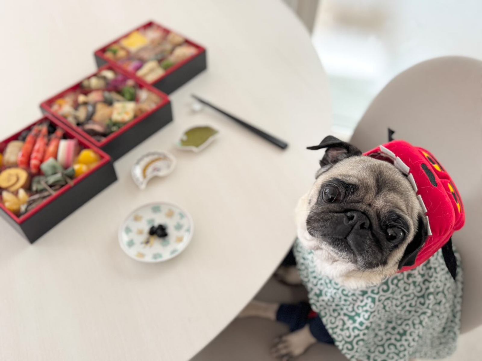 それでも18歳の誕生日を無事迎えられると、飼い主さんは嬉しさのあまり、誕生日旅行に2回も出かけ、お正月には豪華なおせちを用意して、新年を一緒に祝いました。